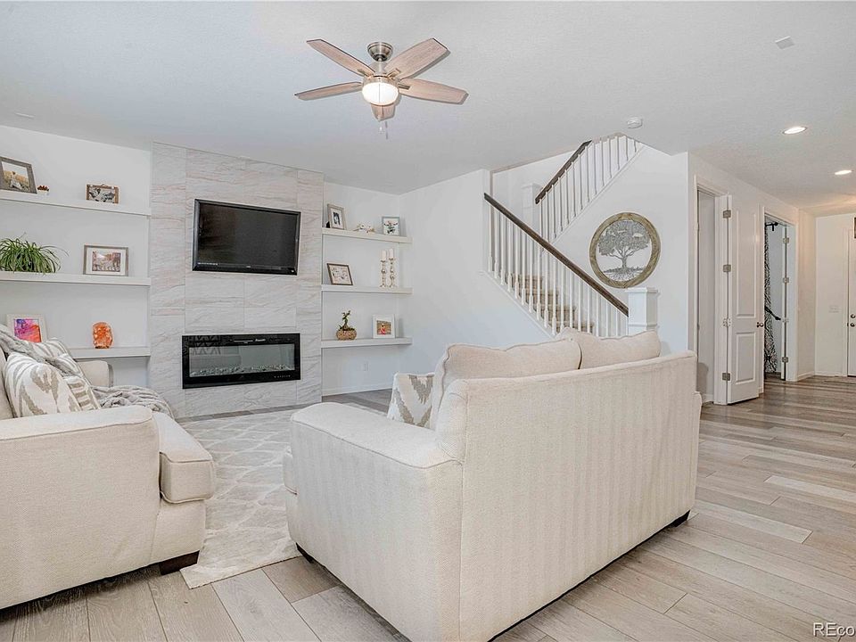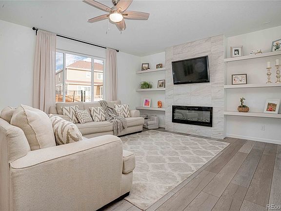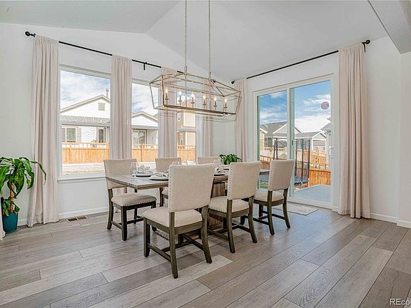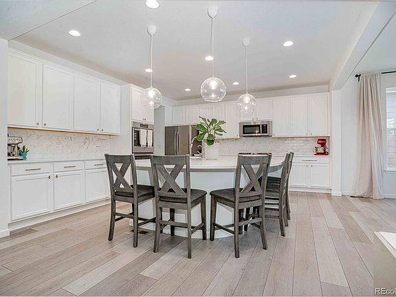 Welcome in to this absolutely stunning home sure to leave an impression. Why build new when you can have this barely 2 year old beauty turn key ready and fully loaded with upgrades This Hemingway is one of Richmond's most popular and sought after floor plans with 5 bedrooms, 3.5 baths, and a fully finished basement. The dreamy white gourmet kitchen features a large unique island that seats 6, 42" cabinets, GE appliances including a gas range, double ovens, and microwave, spacious walk-in pantry, and white quartz countertops. It opens into a beautifully well lit sunroom addition/dining space with vaulted ceilings, and the great room featuring a custom floor to ceiling contemporary tile fireplace and shelving. You won't be able to overlook the beautiful wide plank luxury vinyl flooring throughout the first floor or 9' french doors off of the entry to the office space. The home boasts a fabulous open concept design that's both modern and excellent for entertaining. Upstairs you will find 4 bedrooms, 2 full baths, a laundry room, and a large, versatile well lit loft. The tile throughout the bathrooms is elegant, modern, and unique with complimenting grey or white quartz countertops and undermounted sinks. The basement is the ideal space with a wide open recreation room, bedroom, bath, and large extra storage room. You will enjoy the outdoor living space perfect for entertaining with a large deck and fully landscaped backyard. Cobblestone Ranch is a master planned community with pool tennis courts, playgrounds, and access to fabulous hiking trails and open space.