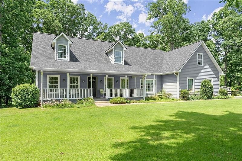 Welcome to your dream Cape Cod home, nestled on over 8 acres in the highly sought-after North Hall School district. Imagine relaxing on your spacious front porch, sipping your morning coffee while enjoying the peaceful surroundings. Step inside to find gleaming hardwood floors and custom window treatments throughout the home. The main level features a cozy living room with a fireplace with gas logs, perfect for chilly evenings. The sunny kitchen is a chef’s delight, with custom oak cabinets, Corian countertops, and a cheerful breakfast nook. Enjoy meals in the separate dining room or on the screened back porch. The Primary bedroom, located on the main level, offers a luxurious en-suite bathroom with a double vanity, whirlpool tub, separate shower, and heated tile floors. There’s also a convenient laundry room right on the main level. Upstairs, you'll discover two charming bedrooms connected by a Jack and Jill bathroom and a huge bonus room that can be accessed from two different points. The basement is partially finished, offering two versatile flex rooms and an entertainment area, along with plenty of unfinished space for storage. Outside, you'll appreciate the new roof (installed in 2023) and fresh exterior paint. The large covered front porch screened back porch and deck with rear stairs provide perfect spots for outdoor relaxation. The property features a huge, fenced garden area bursting with blueberry bushes, two storage sheds, and several acres of trees for added privacy. This inviting home has plenty of room to grow and create wonderful memories. Come see it for yourself and fall in love with all it has to offer!