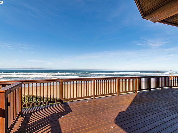 Spellbinding views define this gorgeous Roads End oceanfront. Stunning architectural elements w/ windows that run length of great room, vaulted ceilings, Indonesian Merbau hardwood floors, imported granites & gorgeous gourmet kitchen, replete with top drawer accoutrements. Master suite has private deck access & spa inspired bathroom. Garden level: Full 2nd kitchen, family room + 2 guest rooms. Huge decks on both levels. Sublime.