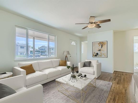 This charming 3-bedroom 1 bath home boasts plenty of natural light which enhances the beauty of the newly refinished hardwood floors and fresh new paint throughout. This Updated Beautiful Home features New Carpet. Kitchen updates include Freshly Painted White Cabinets, New Hardware/Hinges and New countertop. Updated lighting throughout. Bathroom updates include tub refinishing as well as a New Vanity and Updated mirror. Home features a New Water Heater. Stove and Refrigerator are included for your convenience. Designer ceiling fan included. This home is conveniently located within a mile of Dick's Sporting Goods Park, home to Colorado's Major League Soccer Team ~ The Colorado Rapids. Prairie Gateway Open Space is a short mile away with trails, shelters, and overlook area. Enjoy fishing, wildlife viewing and archery at the Rocky Mountain Arsenal National Wildlife Refuge located nearby. Conveniently located. Shopping and local restaurants nearby. Quick Possession is possible. Don't miss this opportunity to own this Newly Renovated home. Please remove shoes or wear the booties provided to preserve the cleanliness of the home, carpet and newly refinished hardwood floors. Don't Miss this Opportunity.