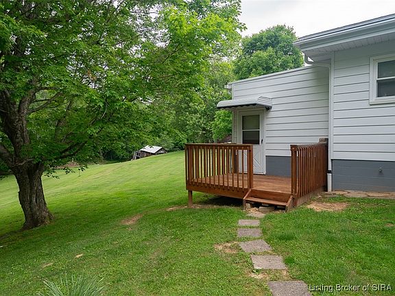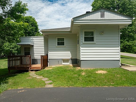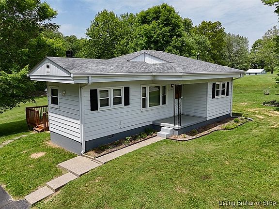 Owned within the same family since 1950, a custom built two bedroom aluminum siding ranch home with partially finished walkout basement on an open and wooded 0.85 acre lot. First time on the market - home ready to move into! March 2025 Survey by J. Brinkworth provided by the seller. Non-conforming lower level with 6’6” ceiling height. Improvements include replacement windows 2021, shingle roof 2024, rubber roof on back wing 2015 & hot water heater 2025. Great location near Floyd Knobs & St. Mary of the Knobs elementary schools. 15 minutes to expressway and downtown New Albany.