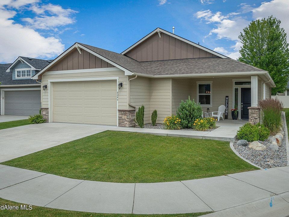This beautiful single level home with 1,583 square feet, 3 bedrooms, 2 bathrooms and a 2 car garage is located in the gated community of Soliel Park within Coeur d'Alene Place. It is an open-concept home with a welcoming covered front patio, vaulted ceilings, ample natural light, and a double slider that leads out to the covered back patio. There is a large walk-in closet in the master suite and two additional bedrooms complete this home. Designed for a carefree lifestyle, this low maintenance home includes full lawn care and partial snow removal, zero steps at the entry and garage, main floor living, and distinctive features throughout the community. Coeur d'Alene Place offers a proud tradition of neighborhood integrity, featuring thousands of trees, acres of parks & miles of walkways. Come see it today!
