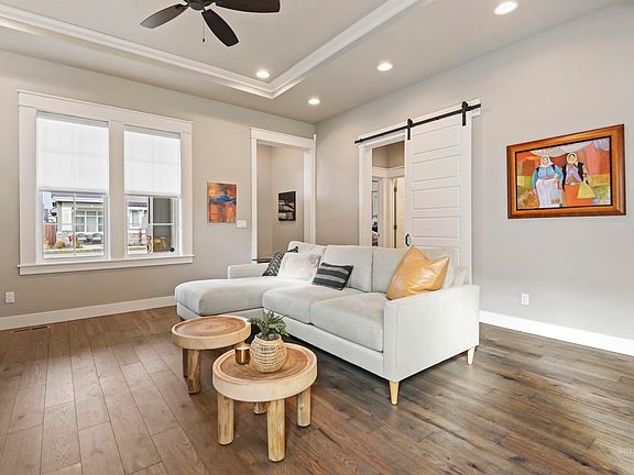 Welcome to the BEAUTIFUL Prairie Harvest floor plan, built by Brighton Homes. This 2 bed, 2 bath + office home is move-in ready. Located in the highly sought-after 55+ community, Cadence at Bainbridge. You'll feel like part of the family here. Community offers 10,000 sq ft clubhouse with lap pool, hot tub, kitchenette, dining, lounge, locker rooms, outdoor pickleball and bocce ball, along with Lifestyle Director. Centrally located near shopping, medical facilities and restaurants. This gorgeous open concept home perfect for entertaining, features Bosch kitchen appliances with gas cooktop, quartz counters throughout, bar area with beverage cooler, Kohler fixtures, engineered hardwood flooring, tiled bathrooms, white painted kitchen cabinets and dark stained alder built-ins. This home is Energy Star Certified. Outside offers professionally landscaped front yard with lush green grass, trees, numerous plants, rock scape side yard with patio, all maintained by HOA along with snow removal of 2 inches on up.