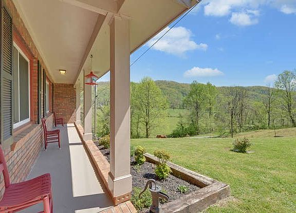 This 3 BR 2 BA brick ranch has so much to offer a family, including beautiful mountain VIEWS from the front porch! It has been completely updated with a beautiful kitchen, new appliances & even granite counter tops. There's new laminate floors, a cozy wood fireplace in the den, C/H/A & new windows. The exterior is maintenance free! There's a 1 car attached carport & a generous unfinished basement with an outside entrance that offers great storage....it could also be an unbelievable workshop. 3.82 acres surrounds this home with a lot of cleared land for gardening & already fenced for your choice of animal. Fronts on a state paved road with private well.