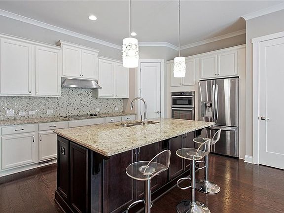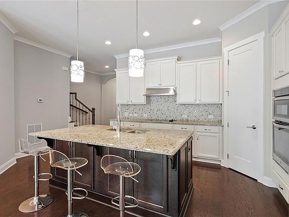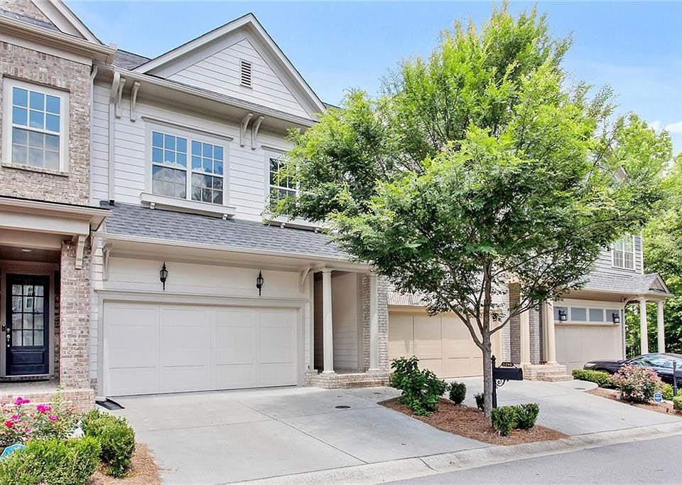 A beautiful townhome in a gated community filled with so many amenities! Garage is on kitchen level, makes it easy to bring in groceries. Open concept with plenty of natural light. Dark hardwood floors throughout the main level. Amazing kitchen with stainless steel appliances, kitchen faucet is handsfree and large granite island facing out to spacious dining and living space. Windows span the back of the home with peaceful views of the woods. You can walk out to your private deck and enjoy the greenery. Upper level includes large master suite, custom walk in closet, luxurious bathroom with quartz countertop for the double vanity, separate shower and tub. Second bedroom with custom built-in closet, separate bathroom and laundry room finish out the top floor. Spacious basement includes access to backyard with bedroom and full bathroom along with plenty of living area for entertaining, media room, playroom. Amazing community includes olympic size pool, tennis courts, fitness facility, clubhouse, playground. So much to offer in this great community and minutes away from Truist Park, The Battery, plenty of restaurants, and easy access to 285. Welcome Home!!!