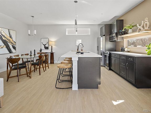 Welcome to Founders 14 - new construction modern townhomes designed for easy living right in the middle of Wheat Ridge on the rapidly expanding 38th Avenue Corridor. More info at Founders14.com. Eligible for Down Payment Assistance program. This vibrant central hub is located on the same block as Founders Park. These three bedroom urban townhomes each with private one car garage, pre-wired for an electric vehicle charger. A well laid out ground floor features a bedroom, full bath and storage closet. Investor/short term rental possibilities with the proper license may allow this to be a rental (buyer to verify with City of Wheat Ridge). Main living space is full of natural light to enjoy and entertain, complete with sleek electric fireplace/heater. The kitchen is generous with bar top seating at the island, stainless steel appliances and abundance of countertop space. Easy to maintain luxury flooring throughout in a beautiful light wood color. The upper level consists of two bedrooms and full bathroom with double vanity, quartz counters and ample storage. The primary bedroom includes walk-in closet and big picture window for all that Colorado sunshine. The secondary bedroom has great views of the Rocky Mountains. Laundry closet for stackable washer and dryer is conveniently located by the bedrooms. No HOA, monthly property management fee for water, trash, snow removal, window cleaning and landscaping. Walk to a plethora of restaurants: Bardo Coffee Shop, Huckleberry Roasters, La Fonda Mexican, Clancy's Irish Pub, Wolf + Wildflower Wine Bar, Get Right's Bakery, Colorado Plus Brew Pub, Rolling Smoke BBQ and Moon River Food Truck park not to mention numerous parks and quick bike ride or drive to Tennyson Street. Retail space to be constructed on site with possible restaurants/retail adding to the exceptional walk score factor of this new community.