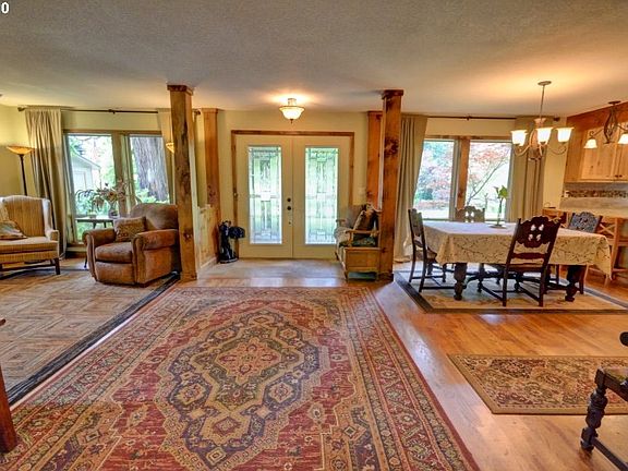 Renovated craftsman farmhouse sits on over 1.5 acres with fantastic views of the Sandy River. Open floor plan with updated kitchen, dining room and cozy living room with fireplace. Granite counter tops, stainless steel appliances and pantry too. Master bedroom with French doors opening to a huge sunny deck. Four bedrooms, 3.5 baths. Unbelievable yard landscaped with flowers, berry bushes, and trees. Oversized 3 car garage. Bonus basement, with wood shop and laundry. So much to list. Fenced too!