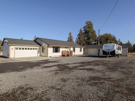 Enjoy the peace and privacy of this small acreage property just minutes from the city limits of Bend. Well maintained single-level home that sits on 4.72 acres featuring an open and bright living area with vaulted ceilings and skylights. Spacious kitchen with center island and stainless steel appliances. 3 bedrooms, 2 full baths, laundry room and views of the Cascade Mountains. The property is fenced and gated with an irrigation canal running through it and includes a pond with pump for irrigation. Attached double-car garage plus detached double-car garage approximately 1,388 sq. ft. with 220 power, extra storage and workspace. Plenty of room for horses and toys.