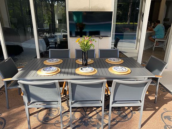 The home offers 3 bedrooms two baths. King, Queen & Twin beds. Great room layout includes formal dining, living room and family room area. Large kitchen just steps to the screened in pool & lanai with covered dining and additional outdoor television. Conveniently located behind Seed to Table just minutes to I-75 exit 111. 10 minutes to Delnor Wiggins State Park / Beach and Mercato & Venderbilt Beach. Dining and Shopping. Several golf options within just a few miles. (sorry no pets). Now taking reservations for 2025 March-April. 2 month minimum.