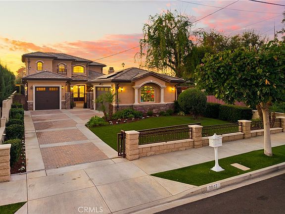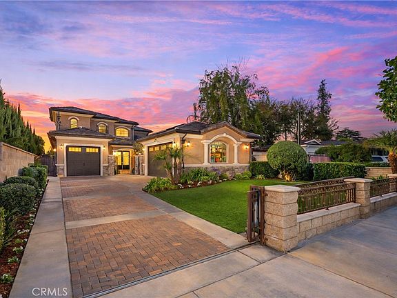 Built in 2016, this exceptional two-story residence offers a refined blend of modern construction, timeless design, and functional living spaces, all set behind a wrought-iron automatic gate for privacy and security. Featuring 5 bedrooms and 4.5 bathrooms, this thoughtfully designed home is ideal for both everyday living and elegant entertaining. A dramatic foyer welcomes you with soaring ceilings and a stunning bridal staircase, immediately setting the tone for the home’s scale and sophistication. The main level features a desirable layout with separate formal living room, formal dining room, and spacious family room, allowing each space to feel distinct yet seamlessly connected. A cozy fireplace anchors the family room, creating a warm gathering space adjacent to the kitchen. The beautifully appointed kitchen showcases a large center island, granite countertops, custom cabinetry, and high-end stainless steel appliances, including a Sub-Zero refrigerator paired with KitchenAid appliances throughout. A separate breakfast nook overlooks the expansive backyard, providing the perfect spot for casual dining while enjoying views of the outdoor space. Two generously sized bedrooms are located on the first floor, offering flexibility for guests, extended family, or a home office. Upstairs, you’ll find three additional bedrooms, each with its own en-suite bathroom, along with a versatile loft area ideal for a media space, study area, or secondary lounge. The primary suite is a true retreat, featuring double-door entry, a spacious sitting area, and two separate closets, including a large walk-in closet. The en-suite bath completes the suite with comfort and privacy in mind. Outdoor spaces are designed for low-maintenance enjoyment, with artificial turf in both the front and backyard, providing year-round greenery and ample room for entertaining or play. A charming front courtyard, welcoming porch area, and striking stone façade enhance the home’s curb appeal. Additional highlights include a three-car garage, comprehensive exterior security camera system with interior monitor, and a fully gated and secured property. Located within the highly regarded Temple City School District, this home offers newer construction, thoughtful design, and premium finishes in a setting that balances elegance, comfort, and convenience.