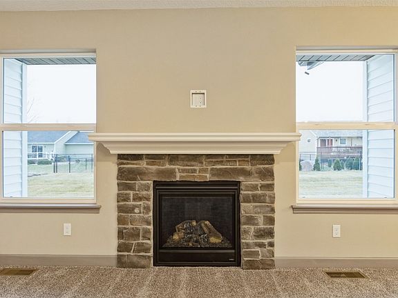 Contemporary ranch style home with desirable features and situated in a reputable school district. The kitchen features white cabinets and Quartz countertops, giving it a clean and modern look. Stainless steel appliances and LVT flooring finishes off the kitchen. Slider off dining area leads to the patio. Center island with breakfast bar that seats four. Open concept floor plan with vaulted ceilings in Great Room and Kitchen. Great Room features gas fireplace with stone front.