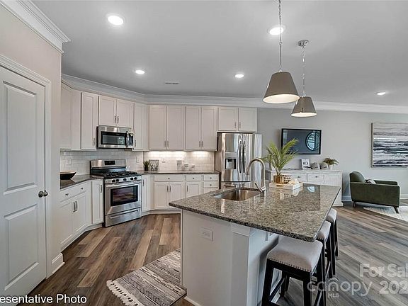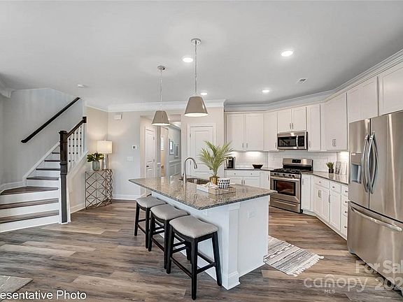 Ask about our below market fixed interest rate available for a limited time. Proud to be named 2023 Builder of the Year, by the Home Building Association of Greater Charlotte! This Norman plan is an end unit with 3 bedrooms, 2.5 baths, and more than 1,950 square feet. The open main floor includes the kitchen with white cabinets, quartz counters, a tile backsplash, and stainless appliances. Enhanced Vinyl Plank flooring runs throughout the main living spaces. The second floor features a spacious loft as well as three bedrooms, two baths and a laundry area. The primary bath has a garden tub and separate shower along with dual sink vanity, and the primary bedroom has an expanded closet for plenty of storage. This home also features a covered rear porch and a privacy fence between rear yards. Pool & Cabana, Dog park, playground, & paved walking trail now open!