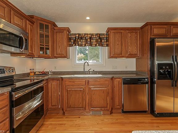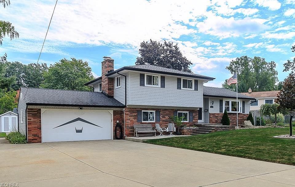 Hard to find 4 LEVEL SPLIT!! Everything new since 2000 - Roof, siding, windows, HVAC, electrical panel, sump pump, gas main service line to house, converted from septic to city sewers, triple concrete drive, beautiful decorative paver stairway to front entrance, vinyl sided shed with electricity! Also added since 2000, the updated kitchen features gorgeous cabinetry, premium stainless appliances, a huge island/breakfast bar all adorned with solid surface counter tops. There is an adjacent dining space with matching built-in hutch/pantry. Main floor offers beautifully refinished hardwood flooring throughout. In 2016 a slider was added from the dining room for access to the newly added huge deck featuring composite decking and vinyl railing system. The upper level consists of 3 bedrooms (hardwood floors under all carpet) and a newly remodeled full bath with granite vanity and tub/shower combination. The family room is gigantic with a wood-burning fireplace and additional slider access to lower patio. The recently remodeled half bath includes adequate space and plumbing for the addition of a tub/shower. An amazing basement for tons of storage has "Nature Stone" flooring and laundry space (washer/dryer remain)! Pride of ownership in this home! Won't last!!