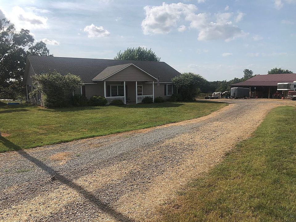 Perfect modern home in the country on 10 acres with spacious rooms and living space. 3 large bedrooms and 2 big bathrooms! Great views of pond and property from the covered back porch. Covered front porch as well. Split floor plan. All wood floors throughout the home. Great closet space as well as custom matching cabinets throughout house. Jacuzzi bathtub in master bath as well as a shower. Shower/bathtub combo with two sinks in the guest bathroom. Spring fed pond that never goes dry. Two lean to's and a 30x40 heated and cooled, plumbed and insulated shop with a 12ft lean to. New storm cellar right off the back porch. 1 car covered carport off the back porch too! The best place for a family that wants to be out in the country with a little bit of land.