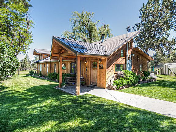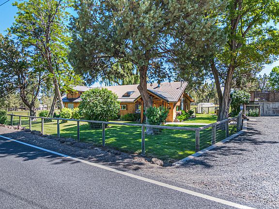 Need some space? Adorable farm home in NE Bend on 1.75 acres with 1 acre COI irrigation & ditch running through property. Welcoming covered front porch with stamped concrete single level home (except 2 ladder lofts), with 1591 sq. ft., 3 bedrooms, office with French doors to back patio, 2 baths, living room with built ins under loft, sitting/dining room has woodstove & utility room with cabinets. Kitchen with pantry, vaulted ceilings, multiple French doors & skylights, ceiling fans, primary bedroom suite with walk in closet & ladder loft to studio, bath & French doors to back patio deck. Outside features views of Mt. Jefferson from property, landscaped, rock garden, metal roof with gutters, partially covered back patio full length of house, fenced yard, Shop/garage detached 25X30 concrete floors & motion lights, RV electrical hook up, fenced pasture, irrigation equipment, hay barn with electricity & corrals, chicken coop (in need of roof), dog kennel, greenhouse, raised garden area,