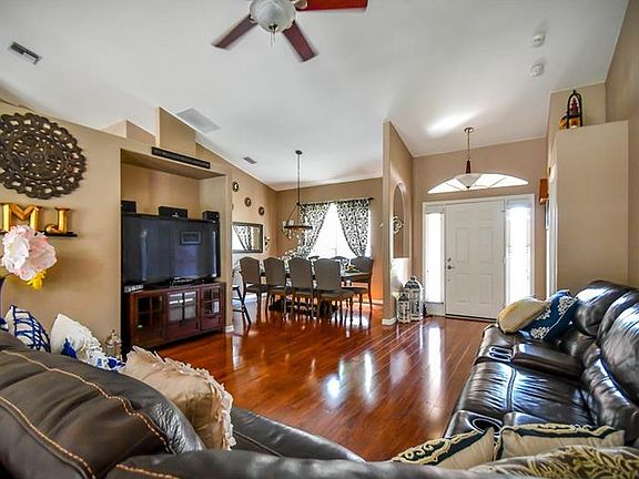 Nicely appointed 4 BR/2 BA pool home on an oversized, quarter acre lot offers a formal Living room and dining room, separate family room and a 3 car garage with an awesome brick driveway. This home has an updated kitchen with Granite countertops. Updated master bath with a pebble stone walk-in shower and the new variable speed, energy efficient AC was installed less than a year ago. There's an oversized pool deck with a gorgeous saltwater pool equipped with fountains and multi-color LED lighting, solar heater and plenty of backyard space for all your family activities. Best of all, Low HOA fees and no CDD fees make this home an exceptional value. Vaulted ceilings and endless upgrades throughout make it look and feel like the home of your dreams! Conveniently located to Tampa, St. Petersburg, and Sarasota.
