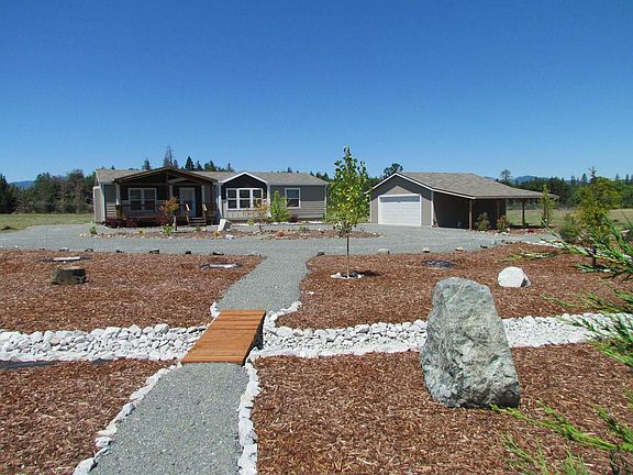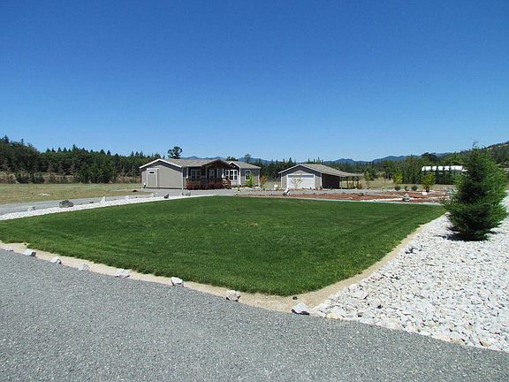 Modern 1532 square foot Karsten manufactured home with a sweet floor plan, built in 2016 on 3 level, fully fenced acres in a no-grow zone. Tucked in away from the road with beautiful counters, gorgeous laminate floors and a 24 x 24 detached garage plus carport and RV parking with circular driveway in North Valley Grants Pass. The granite island, breakfast bar kitchen with pantry feels comfortable with a roomy dining area overlooking the covered rear deck. The ample master suite features a walk-in closet and spacious spa-like master bath with a huge tile shower, separate tub and dual sinks. The living room sports a built-in entertainment center and the laundry room is large with plenty of storage and folding tables galore! Full auto irrigation. All lawn, trees and shrubs have individual sprinklers or drippers. Very strong well. Call for a look inside today!