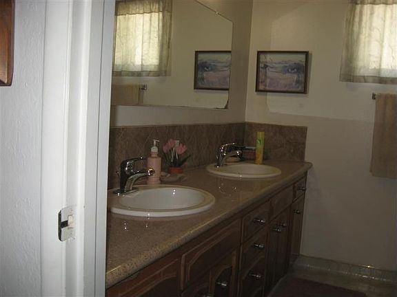 Traditional sale! The owner has already done all the major work - new 30 year roof, new sinks and faucets, new dishwasher and cook-top and tinted dual pane windows were all installed 3 years ago. Plus owner installed new water heater and rain gutters this year. This home features granite counters in kitchen and baths, over sized 2 car garage with work area, inside laundry, separate family and living rooms, covered patio and ceiling fans in every room. The neighborhood is quiet, with friendly long-time neighbors. The back yard is nice-sized, with various fruit trees - lemon, grapefruit, orange, and apricot. A perfect FHA ready family home at a great price!
