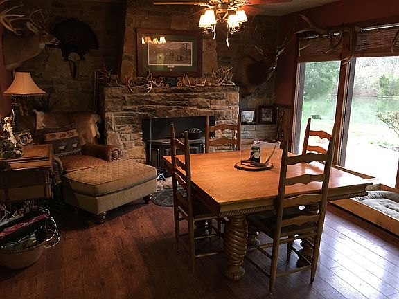 Quaint Country Cabin with huge stone fireplace sitting on 444 acres of beautiful land. Rolling hills and woods. 5 acre lake, logging roads, fenced cattle pasture and much much more.
