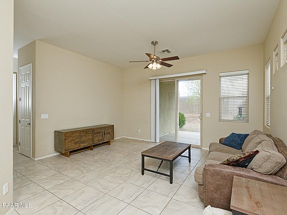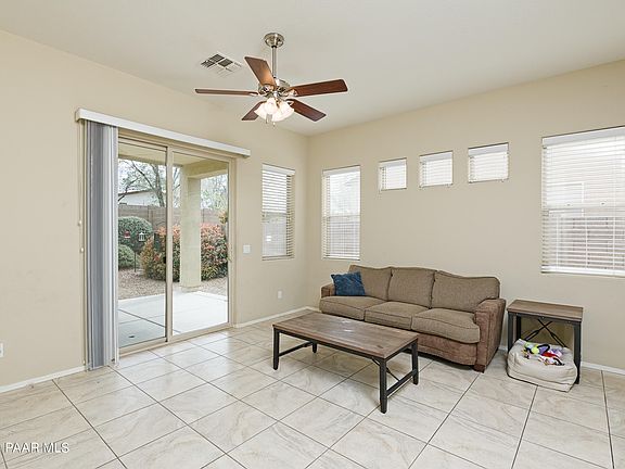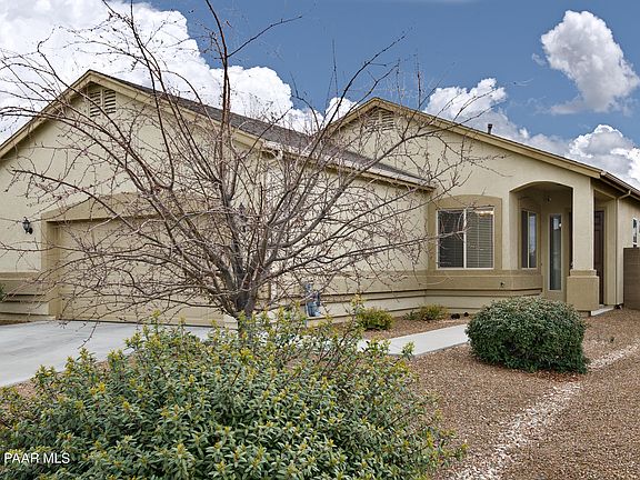 Popular Granville floorplan with soaring ceilings, close to all amenities Prescott Valley offers, including shopping, schools, parks and hiking / biking trails, Event Center and easy freeway access. Enjoy 3 bedrooms, 2 bathrooms, Kitchen with an Island and still room for a dining set that is open to the Central Living Area. Oversized garage with room for 2 cars AND storage, houses a Water Softener and Water Heater. Sliders to the covered back patio and private yard with views of Glassford Hill towering in the background. This one is a GEM you don't want to miss!