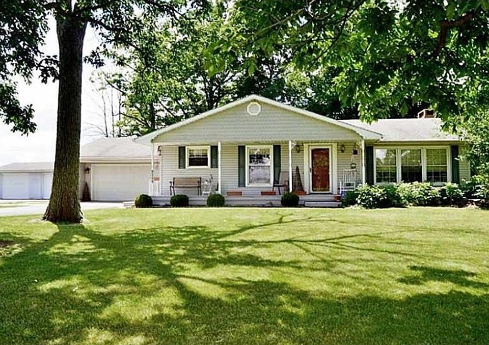 Spacious ranch with open floor plan! Eat-in kitchen with island and appliances, owner's bedroom en suite, lower level rec room with fireplace and much more! The lot features mature trees creating privacy! Large 16x32' rear deck overlooking a field. With two garages, there is room for all your equipment - two car attached with work space and a two car detached with electric. Fenced in area of yard. Immediate Possession! (Please note: Home is being sold as is, but you are welcome to inspect. There is a bow in the wall of the foundation and reports available.) Call today!