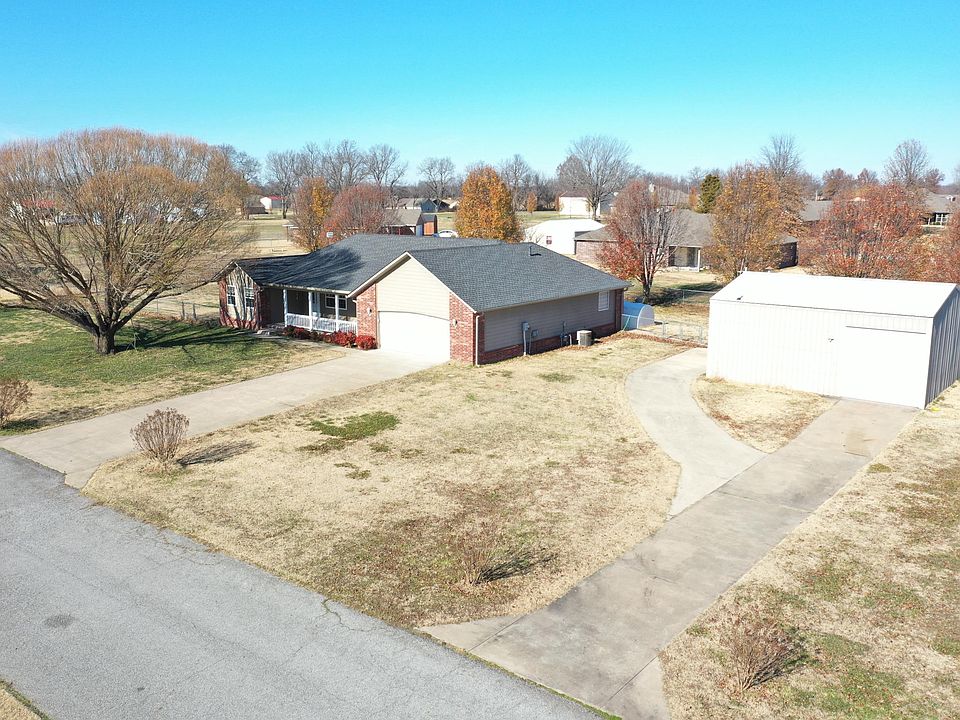 Great 3bd 2ba home in Cherokee Trails with large 25'x30' insulated shop just outside Grove city limits but close enough to all major shopping, lake and hospitals within 5 minutes. This ranch style home offers a split floor plan, open living/dining/kitchen, granite countertops and vaulted ceilings plus a great all-season sunroom, covered porch and fenced backyard all on a 1 acre lot! The shop is foam insulated with central heat/air, includes a half bath w/ water heater and tons of storage, complete with high-bay door and separate concrete driveway. Does include 2 storm shelters. New roof & guttering in 2019.