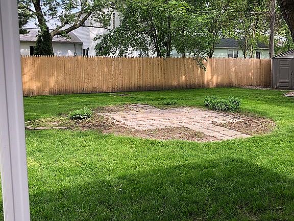 This home was built in 1973 and has only had one owner. The entire interior of the house and kitchen cabinets are freshly painted along with new carpet in all 4 bedrooms and living room; new linoleum in the utility room and new vinyl entryway at the front door. All rooms have double hung vinyl windows for easy inside and outside cleaning and all are covered with plantation/cordless blinds. The kitchen is very large measuring 20’x10’ with hardwood floors and crown molding; includes the stove/oven and refrigerator. The utility room is spacious measuring 12’x7’ with 2 built in shelves and room to add lots of storage. The backdoor in this room has built in blinds. Washer and dryer are included. Bedrooms 1 and 2 are each 11’x10’. Each have 6 panel white closet doors and 6 panel oak entry doors with oak trim and 2 windows. Bedroom 3 measures 9’x9’ and has oak trim and crown molding with an 6 panel oak entry door and oak casing. Bedroom 4 is very spacious measuring 16’x12’. The living room measures 16’x14’ and has a large picture window, oak trim and crown molding. The bathroom measures 9’x7’ and contains a linen closet for storage. The front and back yard each have 2 large mature maple trees which help provide shade to the house in the summer. The front has 2 asphalt driveways with enough off street parking for 4 vehicles. The backyard is fenced and spacious and has 3 utility sheds for storage. White vinyl fencing is around the front corners and a new stockade fence was just installed around the remainder of the yard. There is a spacious covered concrete patio off the back measuring 19’x13’.
