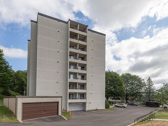 Upper level condo with elevator access overlooking the city. Kitchen offers nice cabinets and tile floors. Open floor plan with 2 balconies. Master bedroom with larger closets and its own full bath. Laundry room is in the unit. Common areas offers indoor and outdoor pools, sauna, exercise and community center. Wait list for a garage stall for an extra fee.