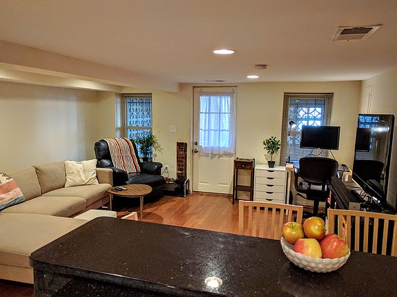 One bedroom, 1 bath English basement apartment in Capitol Hill/H Street Corridor. The apartment is ideally located in the H Street Corridor and just a short walk to everything H St has to offer and only 5 blocks to the Union Station Metro - Whole Foods and Giant are less than 4 blocks away. The apartment features an open floor plan with multiple windows, a kitchen with granite countertops and stainless steel appliances, washer/dryer (2024), and a full recently updated bathroom with walk-in shower. This unit is one of two units in a rowhome. The other unit is a full 3 bedroom, 2.5 bath upstairs apartment that can be rented together with this apartment if preferred. The perfect spot for a single person or couple looking to live in a beautiful neighborhood in the heart of DC! Available Sept 1. Renter is responsible for all utilities. Owner will pass on a portion of the savings from home's solar panels. 12 month lease minimum. No smoking on the property. Street parking is readily available with a permit from the city. Small dogs welcome, but unfortunately no cats.