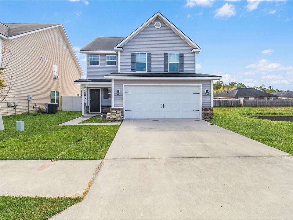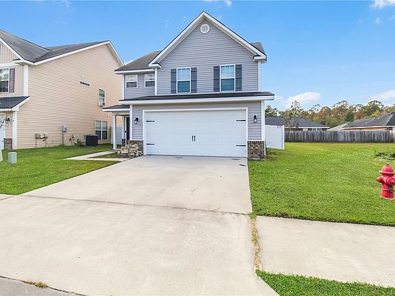 This beautiful 4 bedroom 2 1/2 bathroom eloquent home is in the Griffin Park Subdivision, Hinesville, GA. This highly regarded area is a wonderful place to live. Step into an interior that includes neutral decor and tall ceilings. The eat-in-kitchen has an island, along with all stainless steel appliances. The first floor bedroom includes a walk-in closet and private bath with separate tub and shower. There are three other bedrooms upstairs. At the top of the stairs is a den with plenty of space. The stairs are carpeted while the rest of the home has laminate flooring. Post-relocation, the owners completely painted the interior of the home as well as pressure washing the exterior. The home also features an attached two-car garage. The back yard is fenced and includes a shed. The subdivision has two community pools with one pool and playground a block away. The community pond next to the property is stocked with fish. The home is easily drivable to two shopping centers, dining options, and parks. Schools: Waldo Pafford Elementary, Snelson-Golden Middle School and Bradwell Institute.