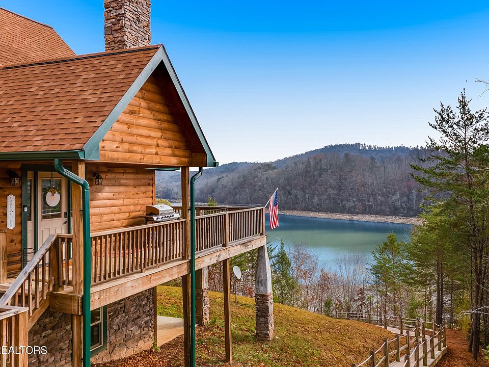 Prime Norris Lake vacation home situated on over an acre of private waterfront in Lone Mountain Shores. With stunning mountain and lake views in all directions, this home was previously featured in Homes & Land magazine as a destination retreat on pristine Norris Lake. Home is a consistent vacation rental aptly named ''Lake Therapy Hideaway'' with excellent reviews and repeat guests, check it out on your favorite booking service. Immaculately well maintained with loads of amenities this property is turnkey and ready to please. Boasting an open floorplan, modern finishes in a cabin setting, and loads of space for extra sleeping areas, this is an ideal place to get away from it all with the whole crew. Don't miss the opportunity to see all this beautiful home has to offer!