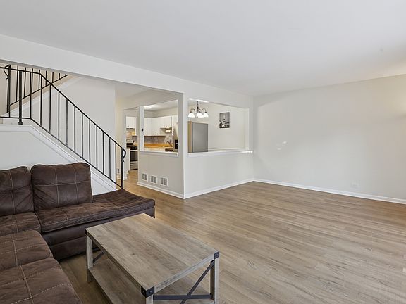 Bright and freshly painted 2-bedroom, 2.5-bath two-story townhome with full basement and attached 1-car garage in a desirable community featuring a lake, outdoor pool, and clubhouse. Conveniently located within walking distance to Conant High School and just minutes from highways, shopping, and more. The home offers luxury vinyl flooring throughout the main living areas with brand-new flooring in the kitchen and dining room, plus a new gas range, dishwasher, and refrigerator. Water heater replaced in 2020. The spacious primary bedroom features peaceful tree views, double closets, and an en-suite bath. The second bedroom includes a large walk-in closet and its own private full bath. The basement has brand-new carpet and provides excellent extra living space-perfect for a family room, home office, or recreation area-along with a separate laundry and utility room. Enjoy your private patio and outdoor space. Rentals allowed-investors welcome. Move right in and add your personal touches!