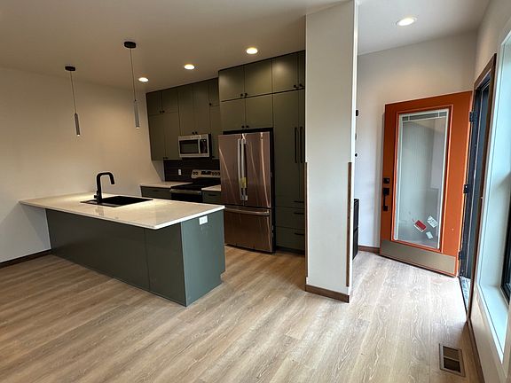 Brand New Modern Build & Very Energy Efficient. -High End Finishes. -Quartz Countertops. -Stainless Steel Appliances. -Washer & Dryer included with unit. -Dishwasher in the kitchen. -Forced air Gas Furnace and Central Air conditioning. -Tenant pays MDU electric Bill only. Property Owner pays the City of Sheridan Bill. -Conveniently located in Sheridan a block away from the Sheridan pathway trail system. In a nice and quiet neighborhood. -Tenant pays MDU bill. -Owner pays the City of Sheridan Bill. -Non-refundable Pet deposit required for each dog and additional monthly rent for each dog. -Very energy efficient brand new unit with low monthly MDU bill.