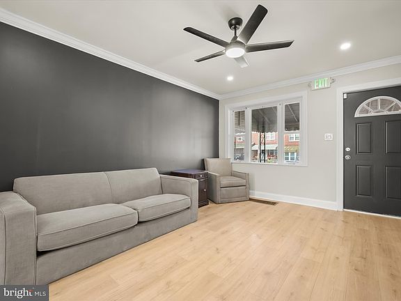This all-brick rowhome offers four bedrooms, two full bathrooms, and an inviting interior. Freshly painted throughout with a light, modern neutral color scheme, it features laminate plank flooring in every room. A covered front porch invites you to lounge outside, leading to a living room with recessed lighting and accent crown molding that continues into the dining room. The kitchen includes stainless steel appliances, gas cooking, and a door leading to the fully-fenced backyard. Upstairs, you will find three bedrooms, each with ceiling fans, and a full bathroom with a tub/shower and a skylight. The lower level includes a fourth bedroom, a second full bathroom with a walk-in shower, a den for extra living space, and a laundry area with walk-out access. Whether you are seeking a primary residence or a rental investment, this home is move-in-ready. This convenient location is just minutes from major routes like 295, 895, Rt 2, and 95—making accessing everything Baltimore has to offer quick and easy.