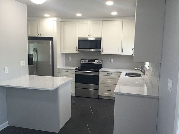 Newly remodeled. New white cabinets, quartz countertops, stainless appliances. No conforming bedroom/office in lower level. 12x16 deck leading to patio. Fenced in back yard. 24x26 garage with finished interior and opener. Convenient location. Immediate possession. Must see to appreciate