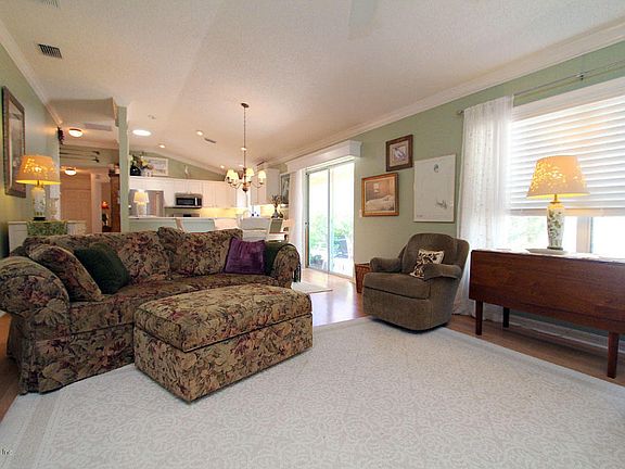 This very popular Foxglove, now Charlotte model, block and stucco courtyard villa with expanded lanai is a must see! Located in a very convenient location, it is just a short golf cart ride away from stores, restaurants, a library, golf and Laurel Manor Regional Rec. Center. Step inside and admire the spacious kitchen with white cabinets, stainless steel appliances, quartz counters and 5 burner gas range. Enjoy the brightness of the home, enhanced by the volume ceilings open living/dining area, and 3 solar tubes. Note the crown moldings, low maintenance laminate flooring and built-in bookcases. Don't miss that inside laundry with lots of storage. Step outside to enjoy your private backyard featuring an expanded, tiled lanai and large mansard, sunbrella-covered birdcage,perfect for relaxing