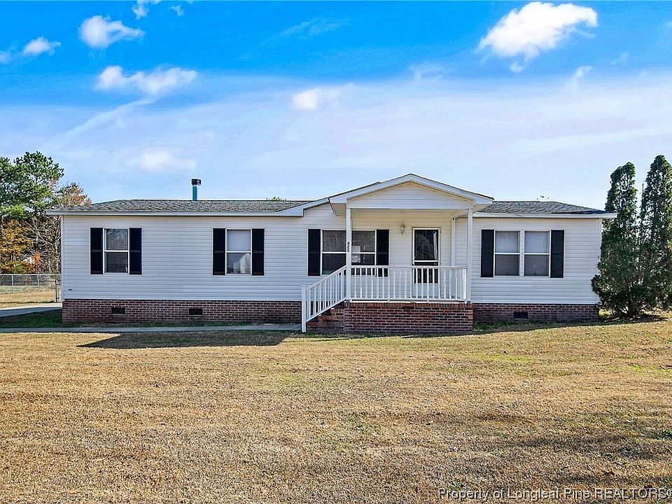 Cape Fear High School district, 1456 sf home with 3 bedroom and 2 full bath on great size lot. Covered front porch. Large living area and den with fireplace. Den has sliding glass door to deck area and fenced backyard. Great size kitchen with bar for extra seating and lots of storage. Split floor plan with master bedroom off of living space. Master bedroom with walk in closet and private full bath. Other two bedrooms down the hall with full guest bath to share. Full guest bath with tub/shower. New carpet and paint throughout home. New HVAC. Shed for extra storage.