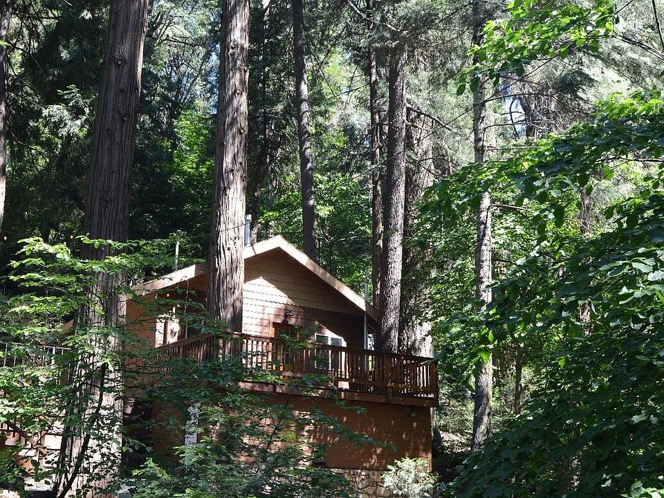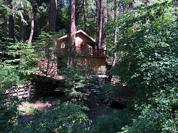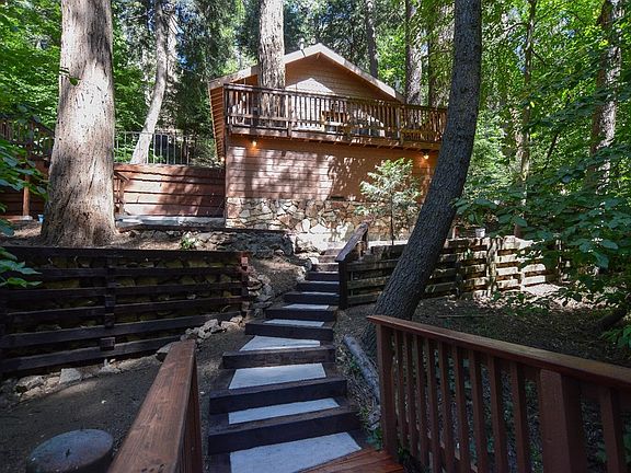 Nestled deep in an enchanting & lush green forest is a charming hidden gem. This fairy tale luxury cabin is surrounded by a seasonal stream & colossal ancient redwood pines that expel a refreshing magical energy. Completely remodeled & turnkey for your private escape or your Air Bnb retreat! Fully furnished & comfortably sleeps 4 adults. Includes Queen Bed, Sofa Sleeper, Patio Furniture & Kitchen Table (w/all Bedding, Pillows, Blankets, Towels) Kitchen Boasts Quartz Counters & New GE Stainless Steel Appliances: Fridge, Stove, Dishwasher, Microwave-Range. Newly poured stamped concrete patio & stairs plus stained wood balcony & private bridge ideal for enjoying the outdoor views. New Rustic Lighting + Chandelier & high vaulted ceilings w/ newly stained beams, doors and cabinets. Freshly painted inside & out w/New Wood Floors & frameless glass shower door! New Pots, Pans, Dishes & Utensils Included! In the heart of Lake Arrowhead, no homes above or below & just minutes to the Village!