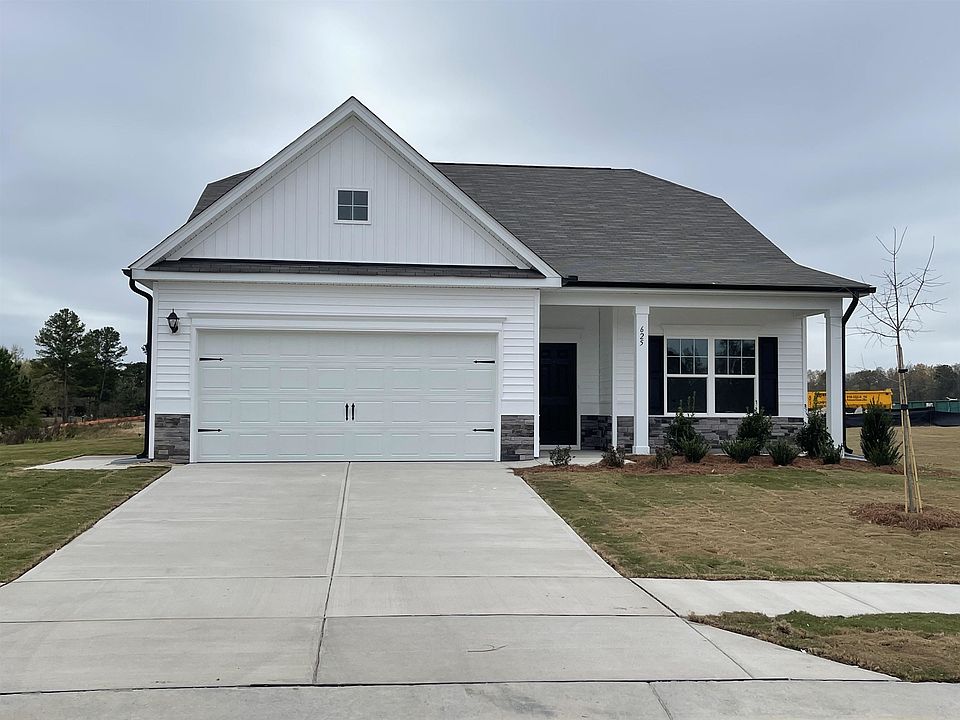 Smith Douglas Homes presents the Telfair at 78 South Community. Open concept with optional 2nd floor. First floor has 4 bedrooms 2nd floor includes loft, full bath and large bedroom with large closet. Kitchen has 42-inch white cabinets with crown molding, quartz countertop with brick-lay tile up-graded electric kitchen appliances and farm-style single stainless-steel sink. Up-graded finish package. Gas line ran for optional gas stove / currently electric and vented microwave. Owner's bathroom has large, tiled shower, dual sinks with marble countertop and separate water closet. To entertain outside, you will have a large extended covered patio with floodlights. This home is located on an end lot with a view of the lush green area.