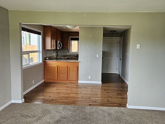 Updated half of a duplex with views of Reedsport and the Umpqua River. Stairs lead to the living area above parking garage (two stalls and shop.) Best for a couple with a small pet. Owner pays for water, sewer, and trash. Small pets under twenty pounds with pet deposit. 6 month lease with review for longer.
