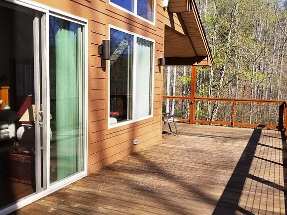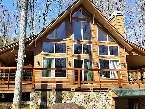 Remarkable Franklin NC Luxury Home on 5.68 Acres, 400' of creek frontage, separate fully equipped apartment/guest house. This home has every possible HIGH END AMENITY POSSIBLE! JBL Speakers throughout, CAT 5 wired for your TECH SMART HOME. Granite Tops, easy close Kitchen cabinets, GE CAFE Stainless Appliances,3 Zone 5 Ton Dual Fuel HVAC, Hardi-Plank Siding, Custom Recessed Lighting and fixtures, engineered wood floors, solid core doors, high end windows & doors, "SAFE ROOM/Gun". This home has an amazing wrap around deck, listen and watch the creek! Media room down below with a full bedroom and bath, attached single car garage for 2 autos, and a separate motorcycle garage. easy access in a park like setting. Enjoy the amazing GREAT ROOM with rich beams and wall of windows & Rocked Fireplace, enjoy the awesome Master Suite with audible creek sounds. Custom exterior lighting and more. The guest house/cabin is heated and cooled w/ covered deck, 1 bedroom, 1 bath and it's own kitchen.. A Luxury Estate, Corporate Get-A-Way, Retirement Residence.. Internet "GotW3" cell to internet presently, or satellite available if you prefer. Building commenced in 2008 - CO issued 2015