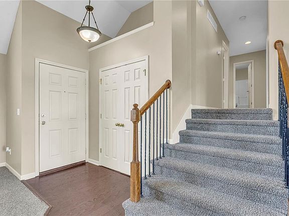 Up a short flight of stairs, you'll find the primary suite, complete with vaulted ceilings, a walk-in closet, and a primary bath with a double vanity. This level also includes two more generous bedrooms and a full bath. From the main level, you can access the two-car garage, offering plenty of storage space. The home doesn't stop there; another set of steps takes you to a versatile rec room with its own powder room, perfect for a game room, home office, or additional living space. This home is a true gem, combining comfort, style, and functionality in a prime location.