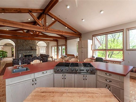 A governor???s drive brings you to this custom home designed by famed architect Gunther J. Kaier on 17 private acres. You (and your guests) will be awed by the beauty of exposed beams, vaulted ceilings, and natural stone fireplaces. To the right, The Great Room, an expansive open floor-plan including a kitchen that ensures the chef doesn???t miss out on the party. Just outside, a deck built to entertain and a hot-tub to relax. To the left, The Living Room and its peaceful view of the Japanese garden w/reflecting pool, as well as the grounds. The Gallery Walk between the two is a perfect place to display your art collection and family photos. Fill the solarium with plants, or just let it soak up the natural light that bathes the home from dawn to dusk. Host parties with 100+ guests while preserving the privacy of your bedrooms just beyond. Wake up to the sun and trees just outside your window. Basement and huge barn with storage and workshop space galore. Park an RV and more. Backup-Gen.