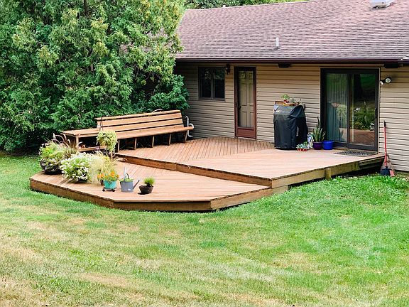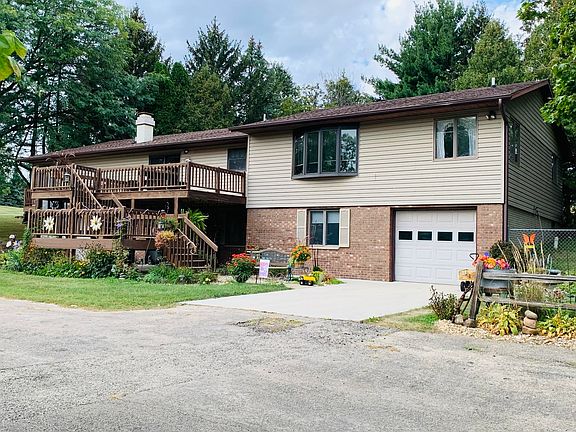 Raised Ranch Home with attached In Law Suite located on 5 acres just inside the city limits with country views. Main Living area features open kitchen dining area with island. Living room has patio door to outside back deck and fenced in yard. Down the hall you will find an update bathroom, 2 bedrooms, and master with update on suite. Down the stairs you will find large family room with wood burning fireplace and walk out patio door to the front of the home. Off the family room you have access to the 2 stall garage and mechanical room. You can access the in law suite from the exterior door or door in the mechanical room. The in law suite features its own mechanicals and utilities. The main floor in law suite has door to deck, kitchen, living room, full bath and 2 bedrooms. One bedroom has a door to access the back deck and yard. Down the stairs you will find a family room with door to the front patio, mechanical room and attached 1 stall garage. On these 5 acres you will find a pond, creek, old barn, and plenty of room to play.