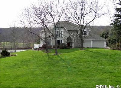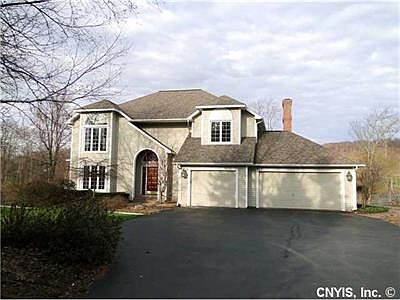 Your Private Escape. Watch The Seasons Unfold and Pamper Yourself! Located on 2.7 acres on one of our Kettle Lakes. This beautifully maintained home offers marble entry, 2 story foyer, cherry kitchen w all new granite and appliances. Slider door off formal dining room leads to porch w retractable awning. Brick patio and stairs lead to your private dock. Swimming, canoeing and ice skating at your doorstep. Spectacular views from every window. So many new things like roof, floor to ceiling windows, granite, master bath, and more! Minutes to ski resorts, and 20 minutes from Syracuse.