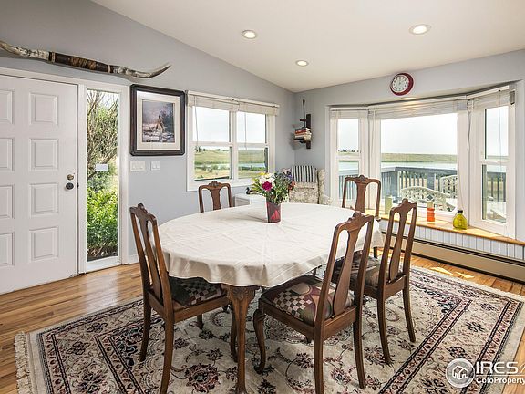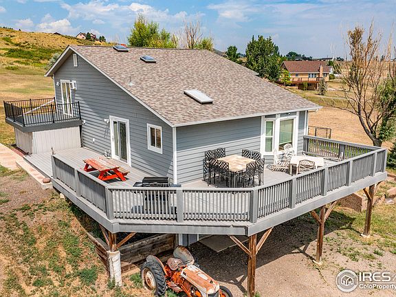 Welcome to this amazing horse property located on a quiet road in the highly desired Cushman Estates! Situated on 4.8 acres, this 4 bedroom, 3 bathroom home has over 2,300 SF of living space and offers breathtaking views of Dry Creek Reservoir. Home features include a remodeled kitchen, hardwood floors, new interior paint, and new composite roof and Diamond Kote exterior siding. The spacious composite deck is perfect for entertaining, relaxing, or viewing the abundance of wildlife including elk, deer, and eagles. Detached garage offers 1,200 SF of workspace, insulated 2x6 construction, RV power hook-ups, and is set up for radiant heating, so bring your toys! The horse barn with loafing shed, fenced area, and dog run further round out this property. Enjoy a peaceful walk to the Cushman Estates open space and pond, private to homeowners. Property is situated just 3 miles from Carter Lake and just minutes from the TPC Colorado golf course and charming downtown Berthoud.