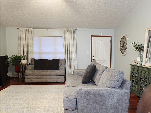 Charming ranch home located in the highly sought-after WOLF BRANCH School District! This beauty greets you with a welcoming covered front porch before stepping inside the warm and inviting living room, complete with a cozy fireplace and impressively tall ceilings. This home offers four sizable bedrooms, providing ample space for family and guests. The fully renovated modern kitchen, featuring updated appliances and quartz countertops, is ready for your culinary adventures.The generously sized, fenced-in backyard boasts plenty of space for relaxing, playing, or entertaining, with a large deck and patio, sunshade, storage shed, and fire pit area. Don't miss the opportunity to make this delightful home your own! NEW ROOF! Too many upgrades to mention! Conveniently located near major highways, shopping, restaurants, St. Louis, and Scott Air Force Base. Welcome home!
