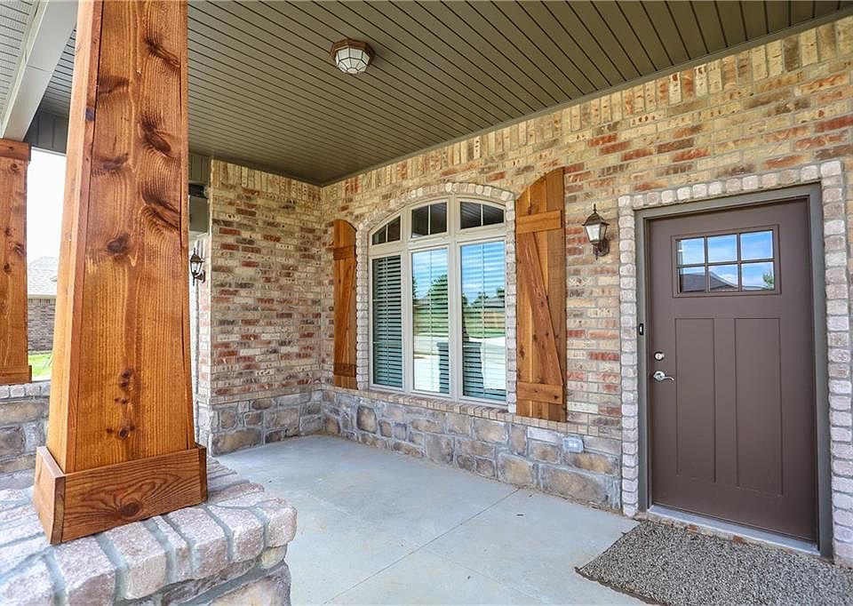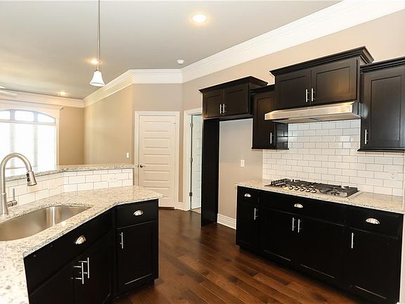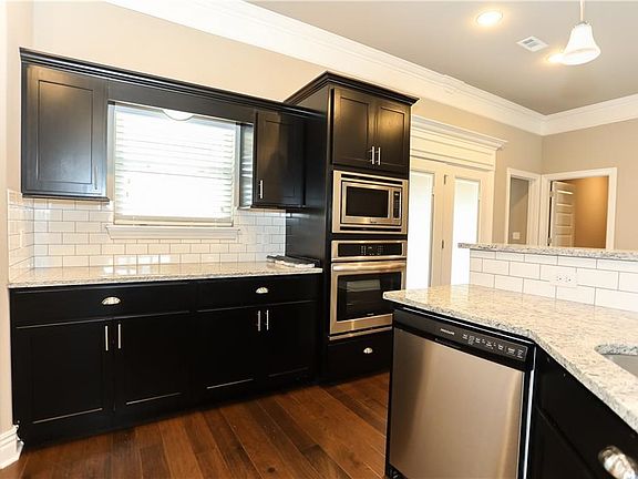 This 4 bedroom gorgeous Pea Ridge home in Battlefield Estates has a 3 car garage, and fireplace in living room; living area has wood flooring; bedrooms are carpeted; baths have tiled floors; master bath has jetted tub and tiled arched shower; custom cabinets; kitchen has stainless appliances with 5-burner gas stove and pantry; covered concrete patio w/fan; fully sodded, landscape, and fenced; a 1 year builder's warranty provided; beautiful home by Cox Development LLC