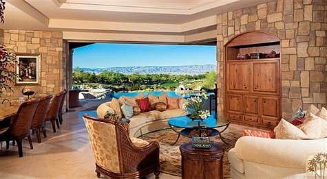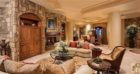This amazing Tuscan village style home has everything that the most discriminating buyers look for. The long meandering driveway leads you to a genorous motor court with a beautiful hand carved hickory gate leading to to a tranquil courtyard with a waterfall and stream. The living room features a stacked stone double-sided fireplace and pocket doors that let the outside in with views of the 15th green and mountains beyond. The kitchen features high performance ss appliances with doors to the outdoor patio. The spa inspired master suite hosts designer bedding a European-style fireplace with sliders that open to a private patio with a fireplace. The private freestanding guest house feature a large living room with breakfast bar and two generous guest suites. The 1165 square foot garage has room for four cars and is fully air-conditioned. Brokered And Advertised By: Bighorn Properties, Inc. Listing Agent: Trevor Printz