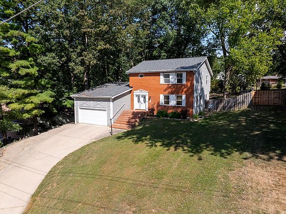 Lots of living space! Walk up the grand brick stairway and enter the home through the beautiful double doors. The foyer will lead you to the second floor where you will find the homes 3 bedrooms and 2 full baths, including the master bedroom with ensuite. The main floor offers a living room, formal dining room, large kitchen with stonework, half bath and the homes family room with stone fireplace. The finished basement features a second family room, potential 4th bedroom or office, and laundry room. The exterior offers a large park-like, fully fenced in, backyard with fire pit, concrete patio/basketball court, large deck with built-in seating, mature trees and landscaping. Home also offers a 2-car garage, new roof, concrete driveway and much more. Call today to schedule your private showing!